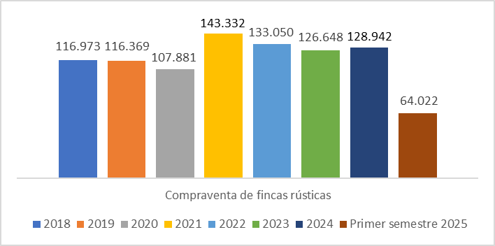 Durante el primer semestre de 2025 en España se compraron 64.022 fincas rústicas, según ha informado el Consejo General del Notariado.