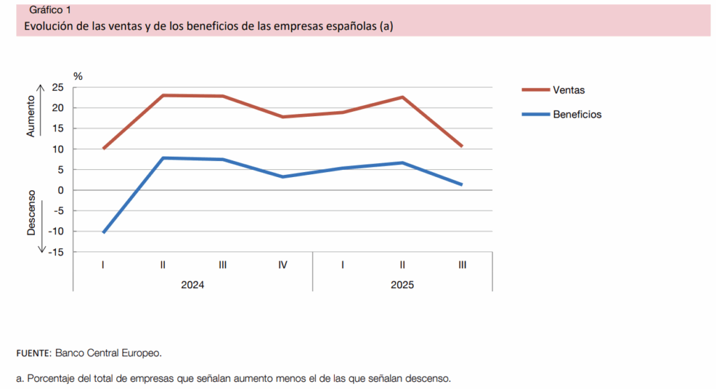 En el caso de los beneficios, el porcentaje de empresas grandes en las que aumentó este excedente fue superior al de las que indicaron descensos, en tanto que las pymes continuaron declarando mayoritariamente una caída de sus resultados, con un porcentaje neto del -7 %, cinco puntos más negativo que el del trimestre anterior, según informa el Banco de España.