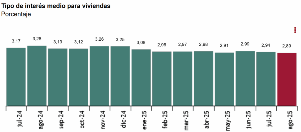 El tipo de interés medio al inicio fue del 2,95 % para las hipotecas sobre viviendas a tipo variable y del 2,85 % para las de tipo fijo.